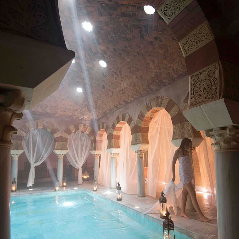 Este spa de Málaga está inspirado en el Hammam, por lo que su estética es increíble y digna de visitar que lo hace situarse en en el puesto 4 de nuestro ranking de mejores spa de Málaga. En cuanto a las instalaciones, es de menor tamaño que el resto ya que cuenta con 3 piscinas; agua caliente, templada y fría.