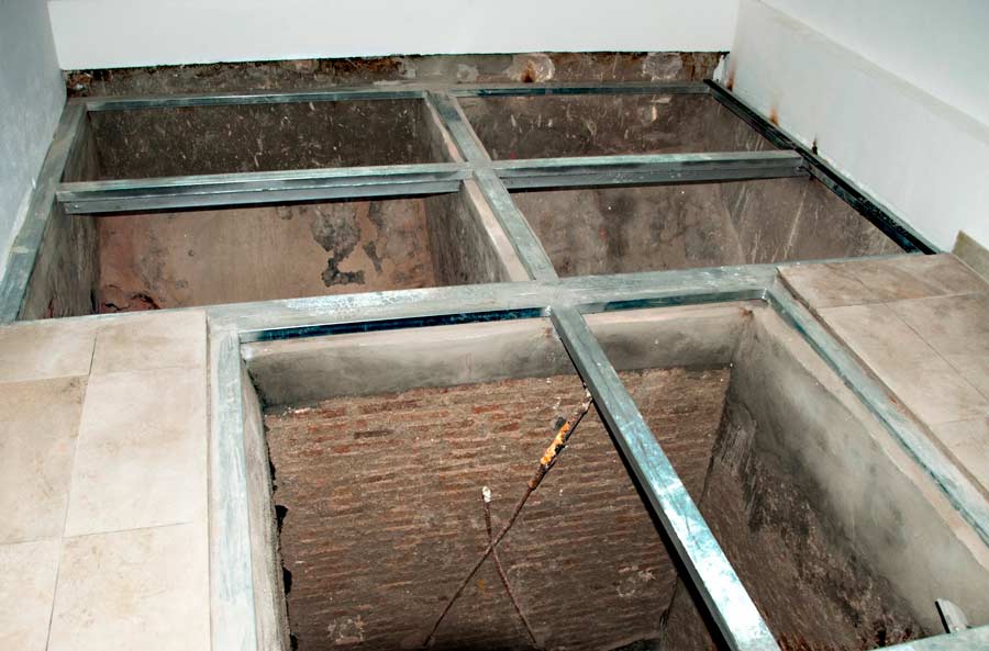 Los silos plenamente integrados en lo que será sala de exposiciones. Se podrá ver el interior de estos desde la superficie del suelo gracias a unos paneles de cristal.
